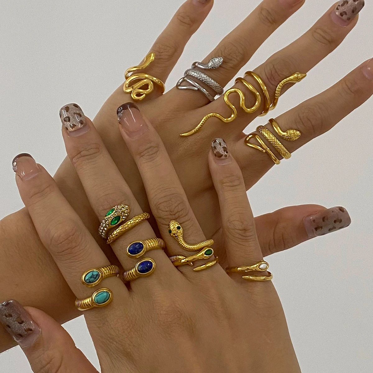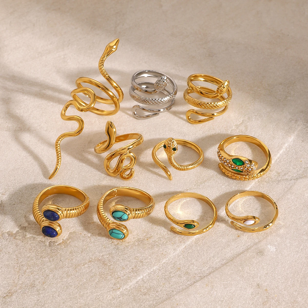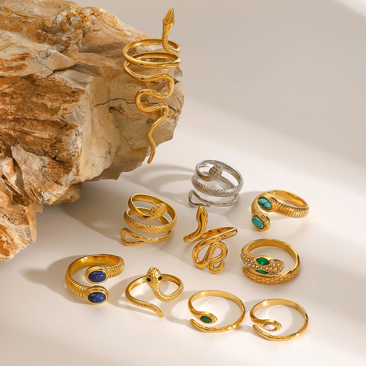 R006 Uworld Retro style Snake Adjustable Ring Serpentine Gothic Ring Stackable Animal Ring Women's Jewelry Gift for Her