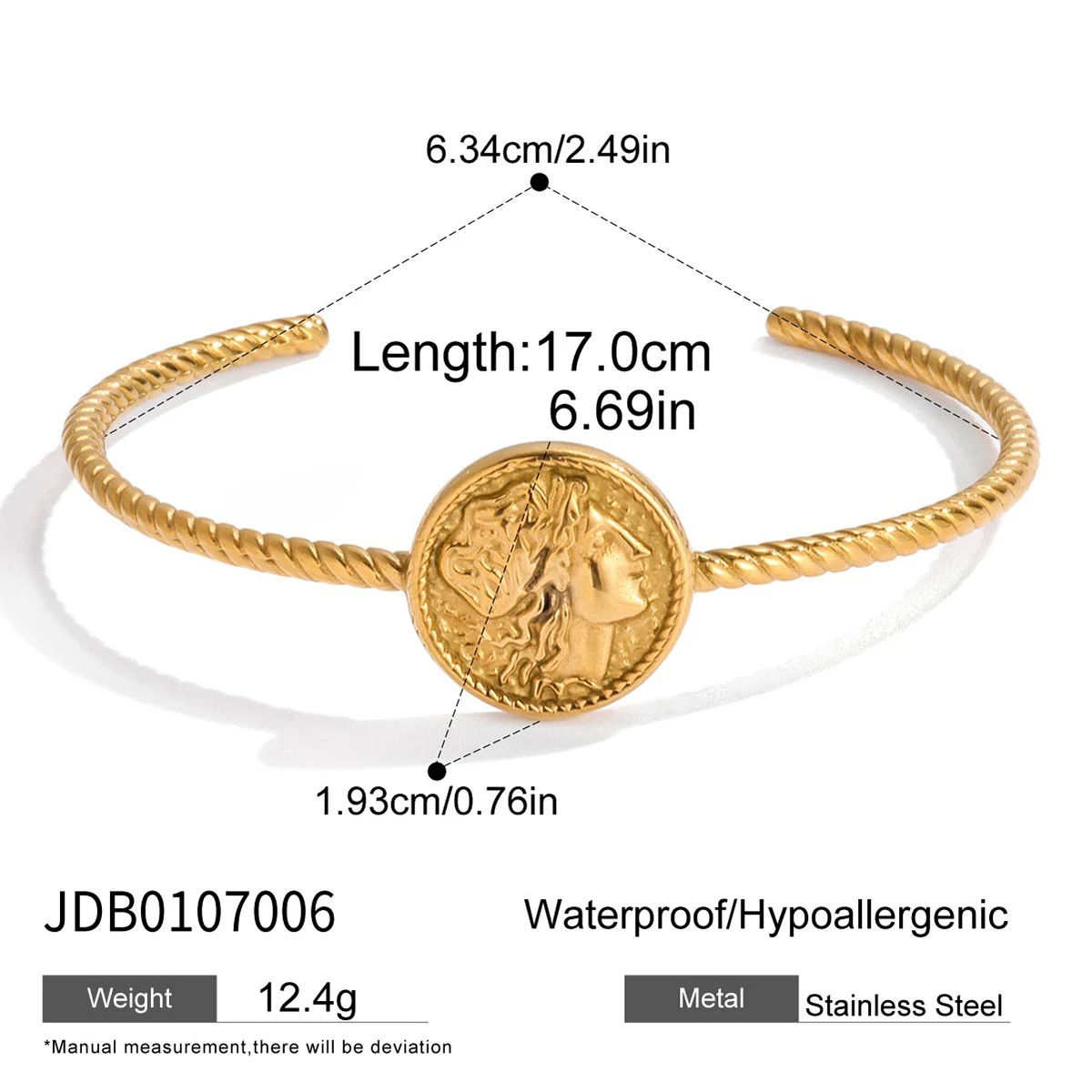 B009 Uworld Classic Trendy 18K Gold Color Plated Coin Thread Fried Dough Twists Open Bracelet Waterproof Stainless Steel Jewelry Gift
