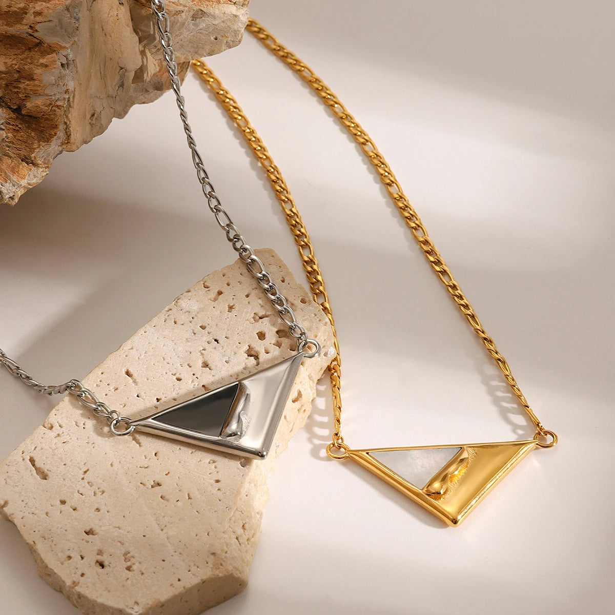 P005 Uworld 2pcs Fashion Triangle Necklace Missing Triangle Pendant Women's Jewelry Party Gift for Her