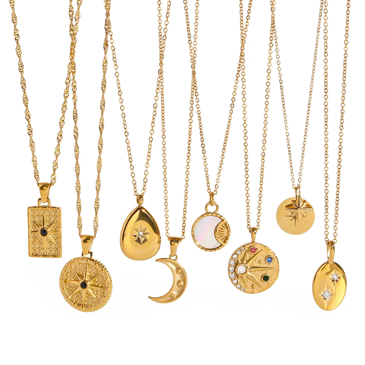 P009 Uworld Dainty Moon Necklace Gold Color Sun With Opal Stone Pendant Necklace Birthday Gift Celestial Necklace