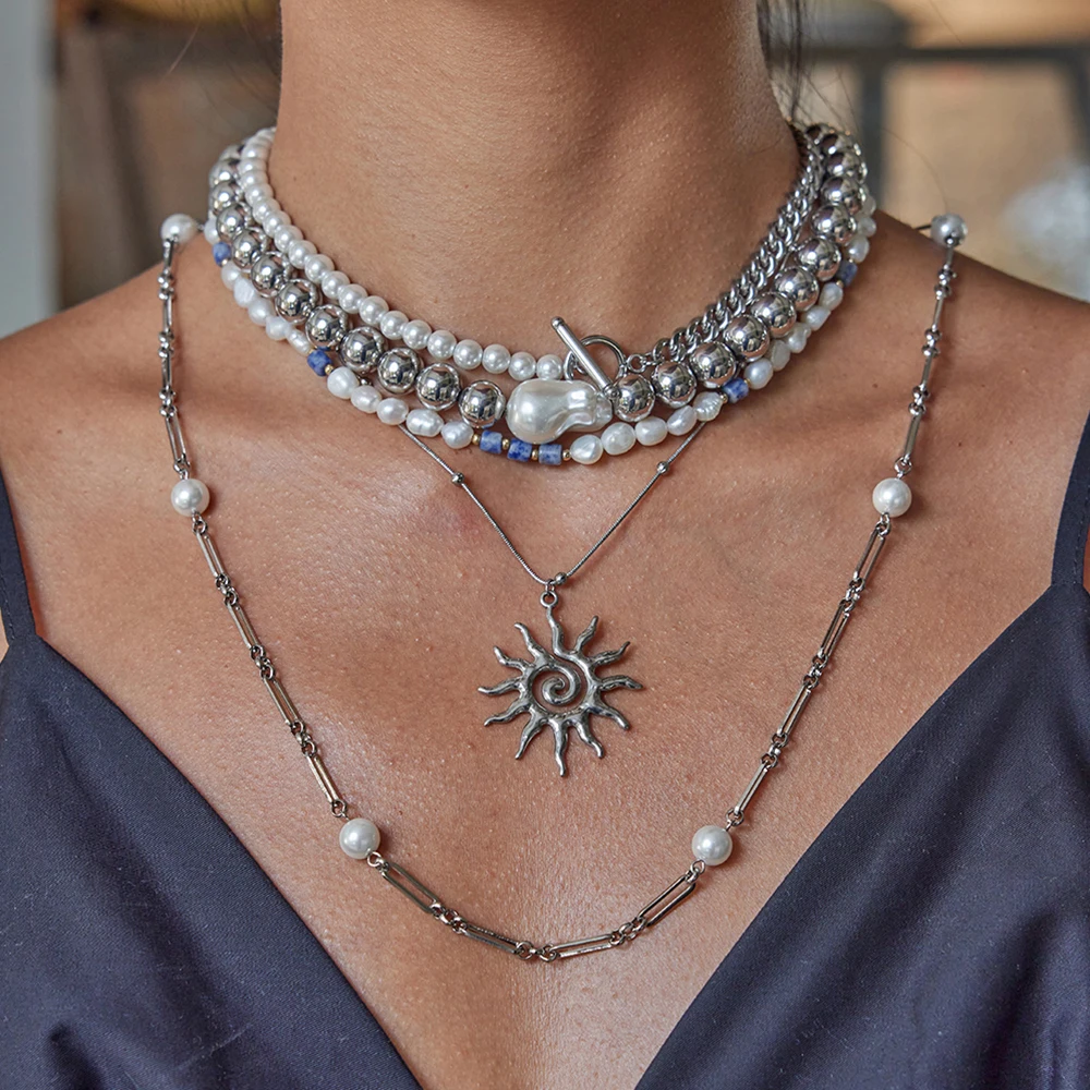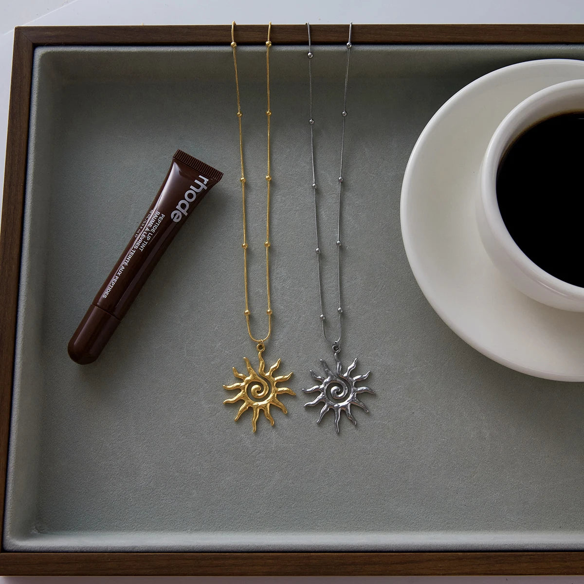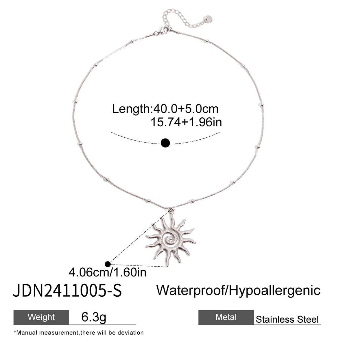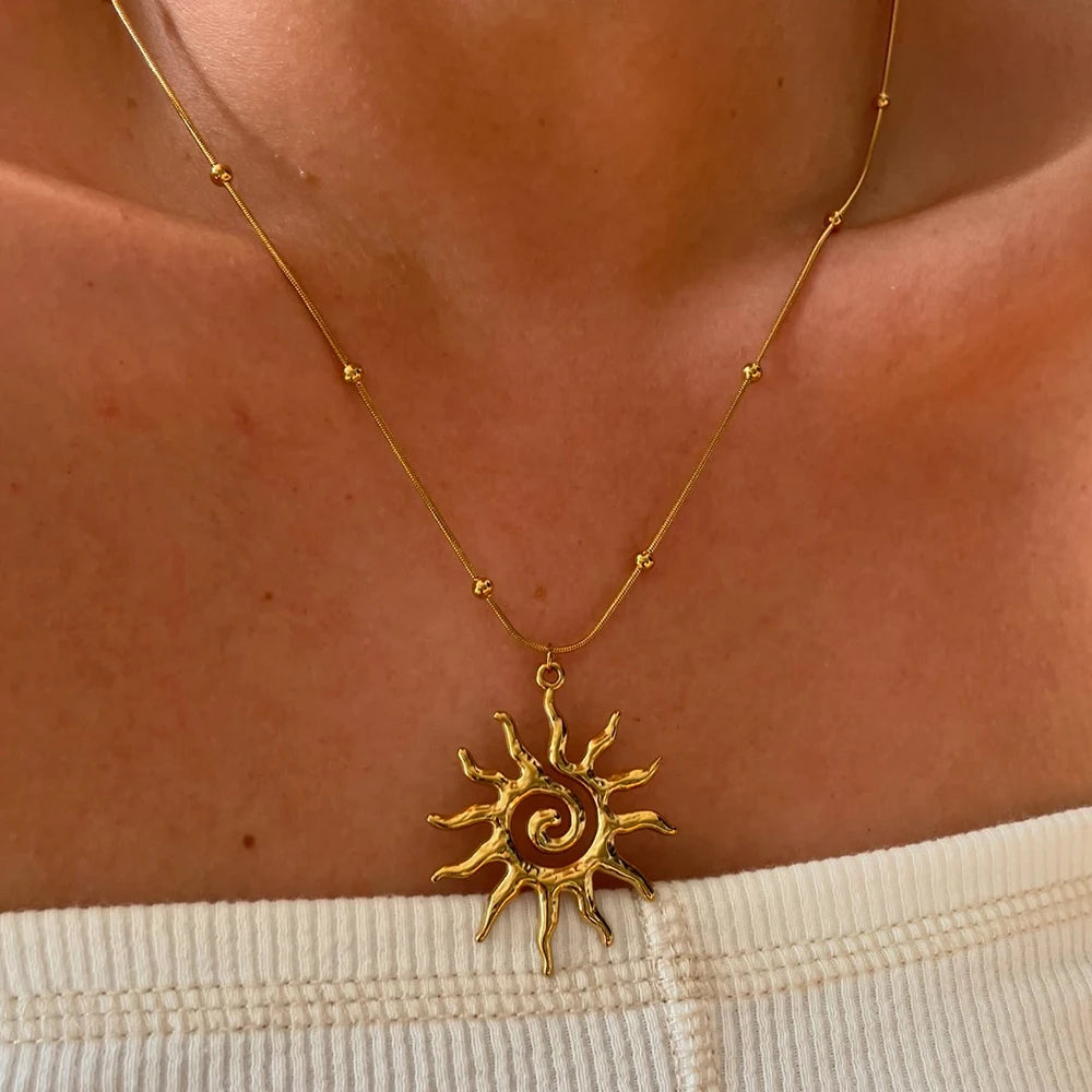 P010 Uworld Unique Trendy 18K Gold Color Plated Hammer Patterned Spiral Sun Pendant Necklace Stainless Steel Waterproof Women Jewelry